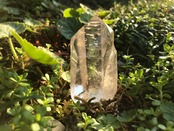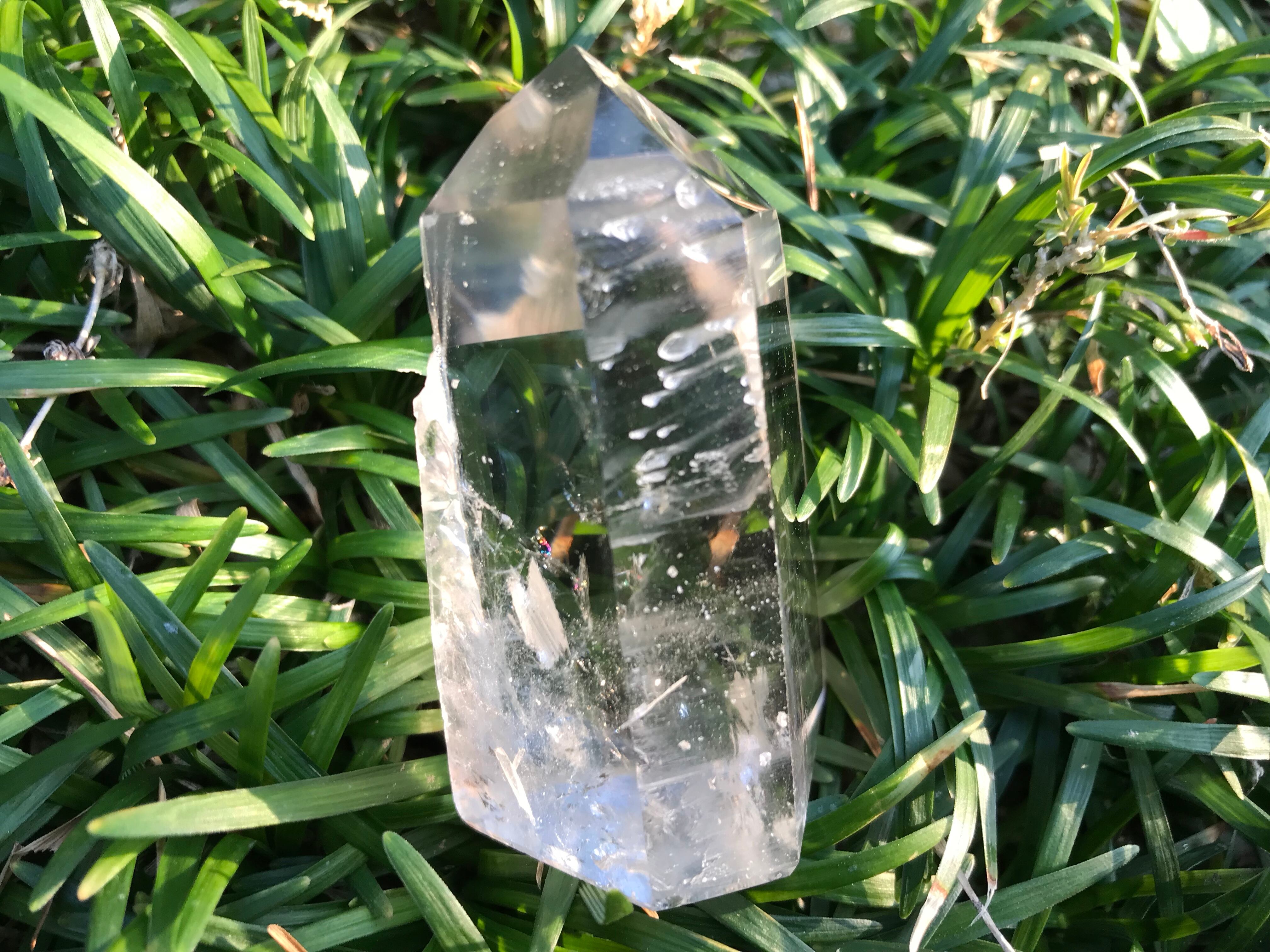 柱面にはレムリアンリッジと呼ばれるレムリアン特有のバーコードの不思議な模様が見られる、透明度の高いレムリアンシードクリスタルです。人類が進化するための知恵や宇宙の真理が刻まれていた水晶と言われ、この情報を必要とする人の元にやってきて持ち主を根源的な気付き、深い癒やし、潜在能力の開花をサポートすると言われています。また正面のファセット五角形で真裏のファセットが正三角形というチャネリング水晶でもあるので、魂の奥底にある真理と知恵の源泉へのチャネルを開き、自己の内側にある知識の究極の源泉との意識的な繋がり(受信)をもつことができるといわれているマスタークリスタルです。