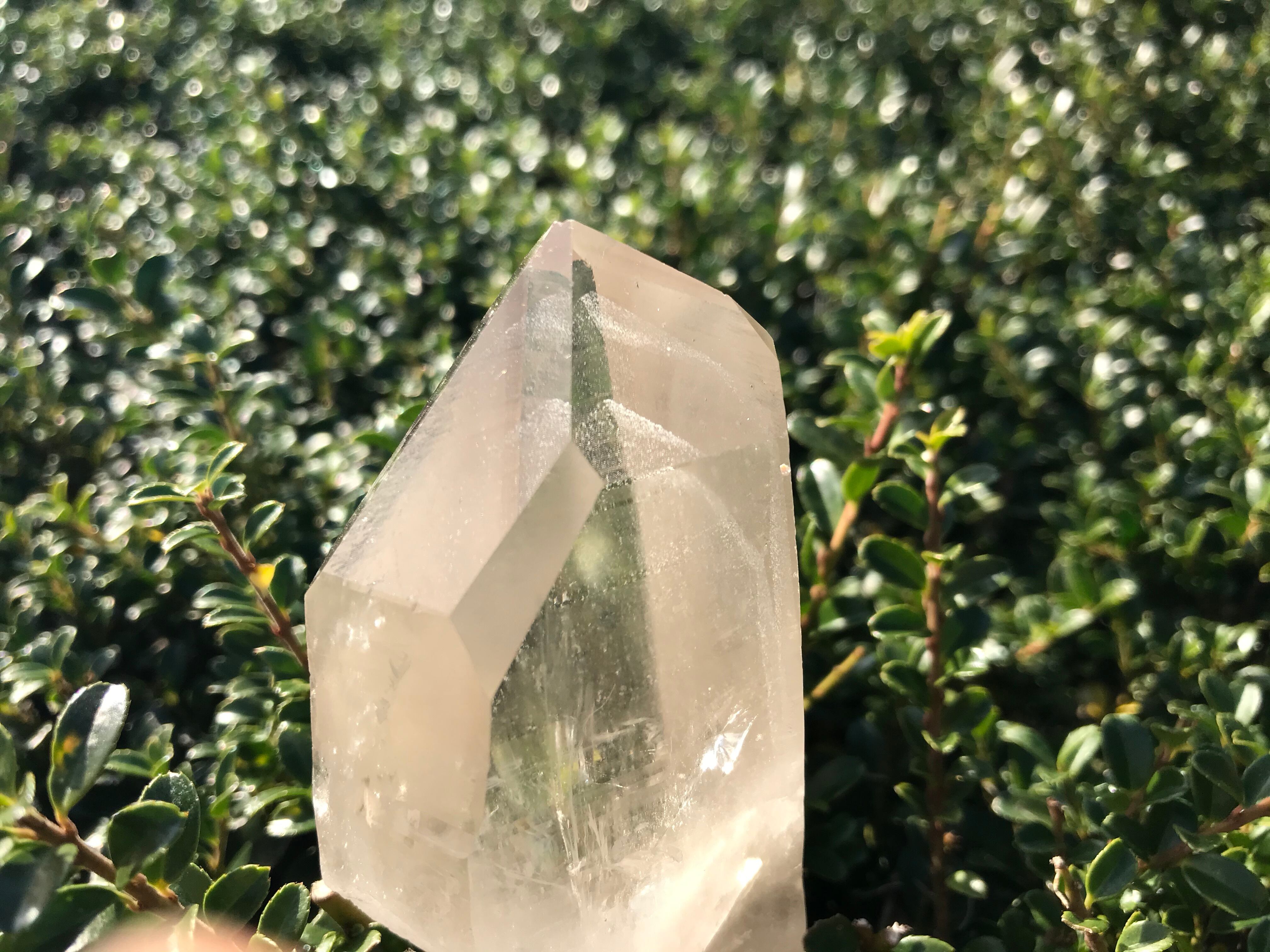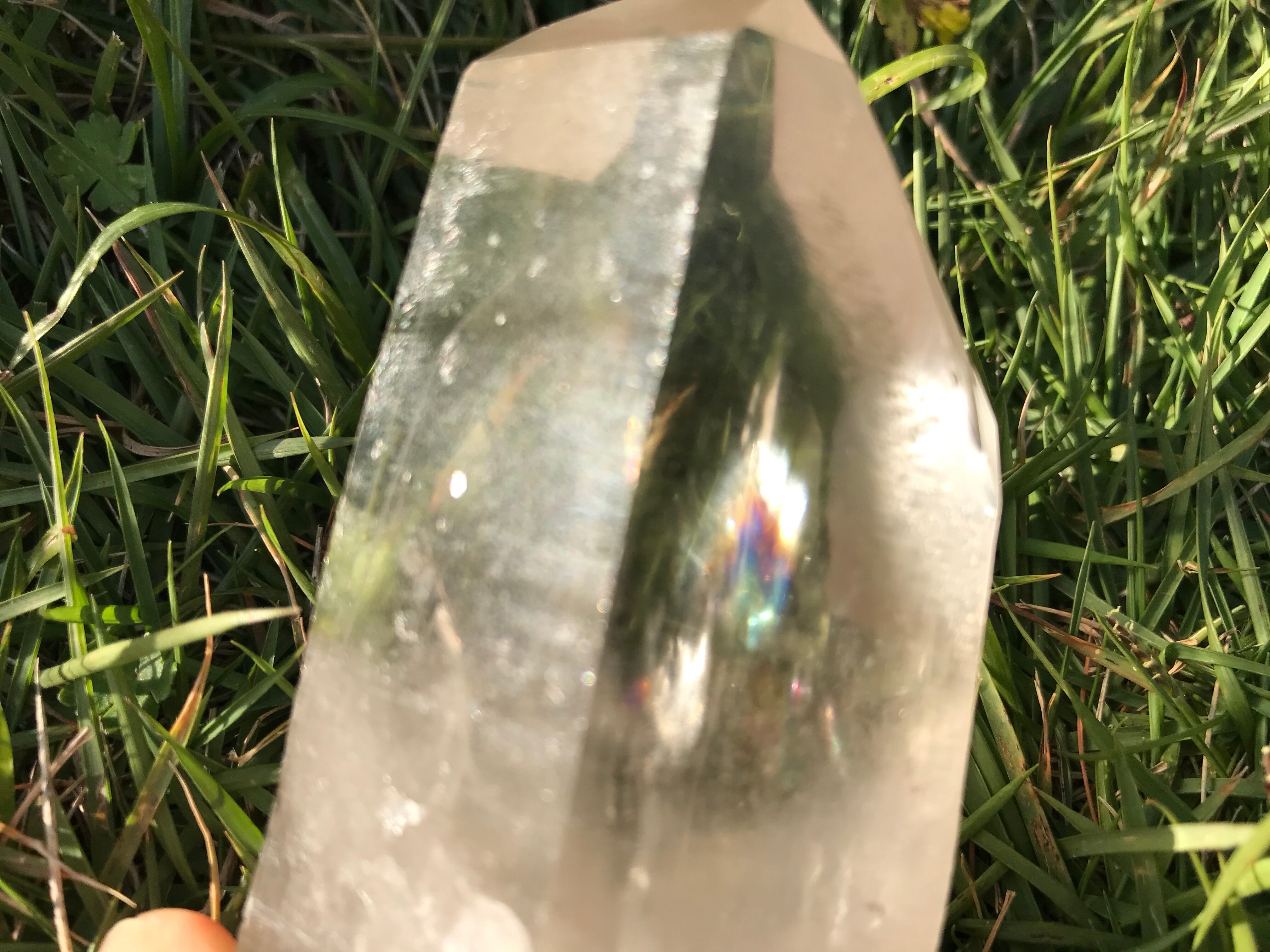 透明度もあるため、中を覗き込むと美しいファントムだけでなく、翼のように見える中央のクラックが光に当たると写真のように虹色に輝きます。虹が見られる水晶もまたマスタークリスタルで、持ち主の夢や希望を叶えるサポートをすると言われています。