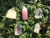 種類が異なるミニサイズ・クリスタル(水晶)ポイント5つセットです。小さいけれど、何気に5人中4人がマスタークリスタル(特徴的な外見をもち特別な使命をもつと言われる水晶ファミリー)仕様に研磨された豪華なセットです。