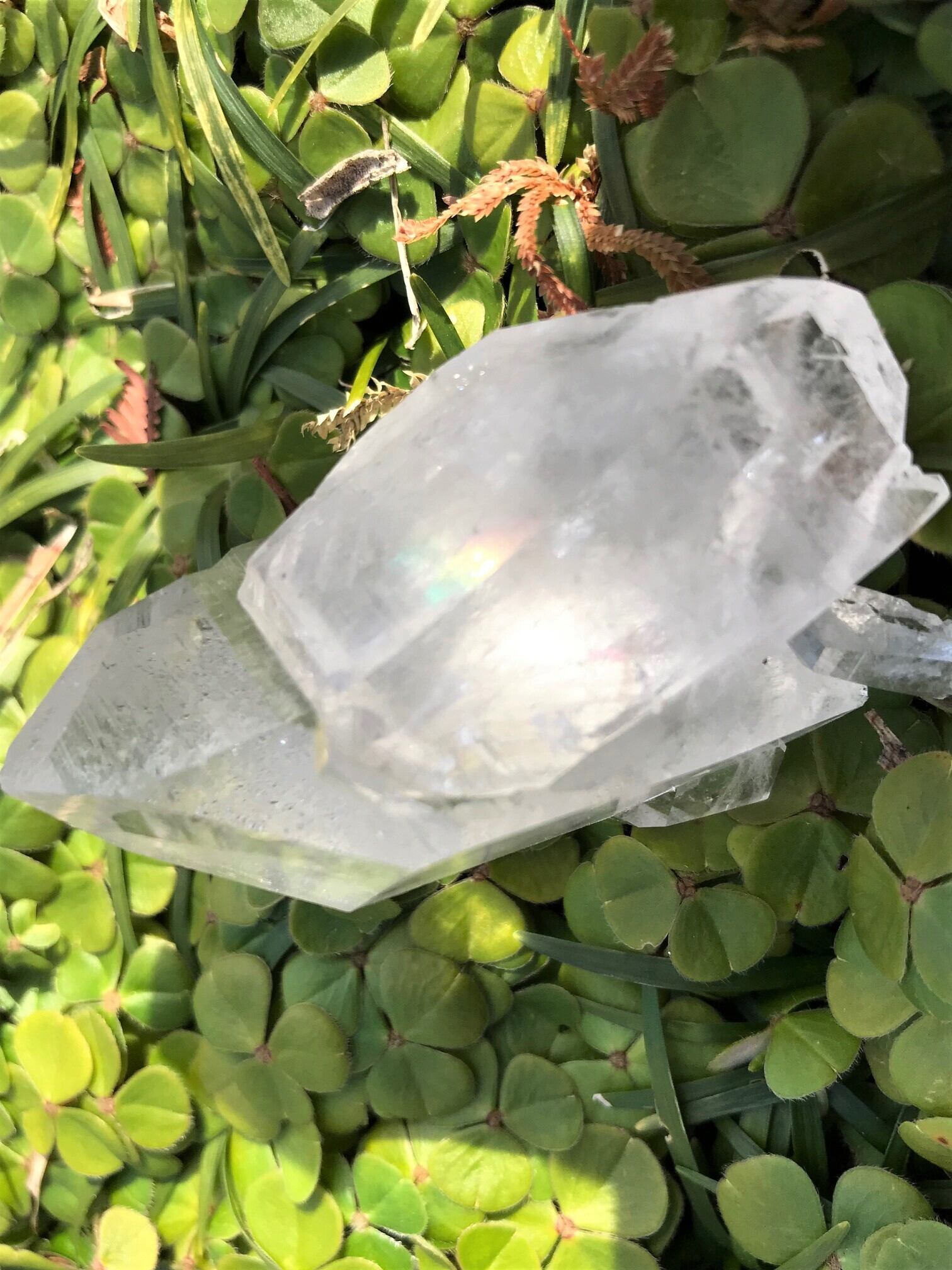 それにしても、このクリスタルは貫入部分だけでなくところどころに虹が見られるレインボー水晶は、水晶自身のエネルギーを増幅させ、持ち主の願望実現を助けると言われています。